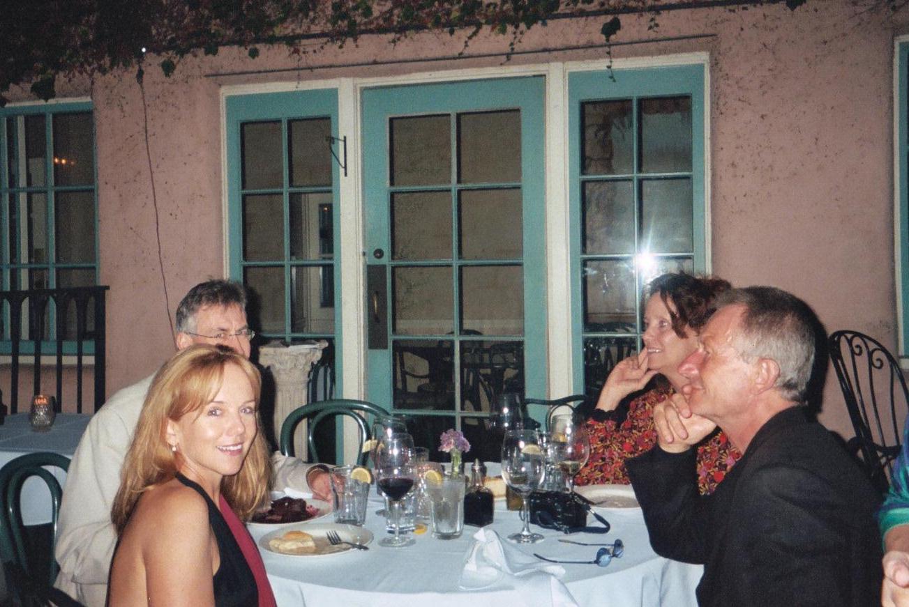 After the reading, we drove over to Nona's, the romantic Italian Courtyard restaurant inside the Bella Maggiore Inn. Those who went to see "Murder" in 2000 will remember that we had lunch with Ted and his family there before the Sunday matinee of "Murder". It hasn't changed AT ALL. The same ramp we took pictures on is there, the same decor, and charm - and the food is fabulous. We had a choice of salmon with asparagus and potatoes, chicken with a coconut sauce, rice and vegetables, and pork with vegetables. I chose the salmon. YUM!!!!! The dishes came with a lovely salad, and desert was a choice between a bittersweet chocolate torte with raspberry sauce or a cream puff with peaches and sauce. I chose the chocolate - GOD was it rich! I hear the puff was also excellent. Then we had coffee (I had hot chocolate - as if the torte wasn't chocolate enough!). We also had complimentary wine - either red or white - and both were great. Karyl Lynn definitely knows how to put on a party. There weren't a huge amount of people there (the initial ticket was $100 - though there was a 2-for-1 offer made on the RTC list today), but it was a good and enthusiastic group.