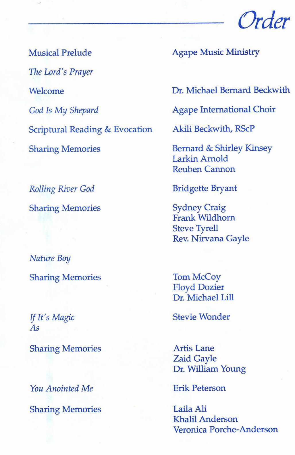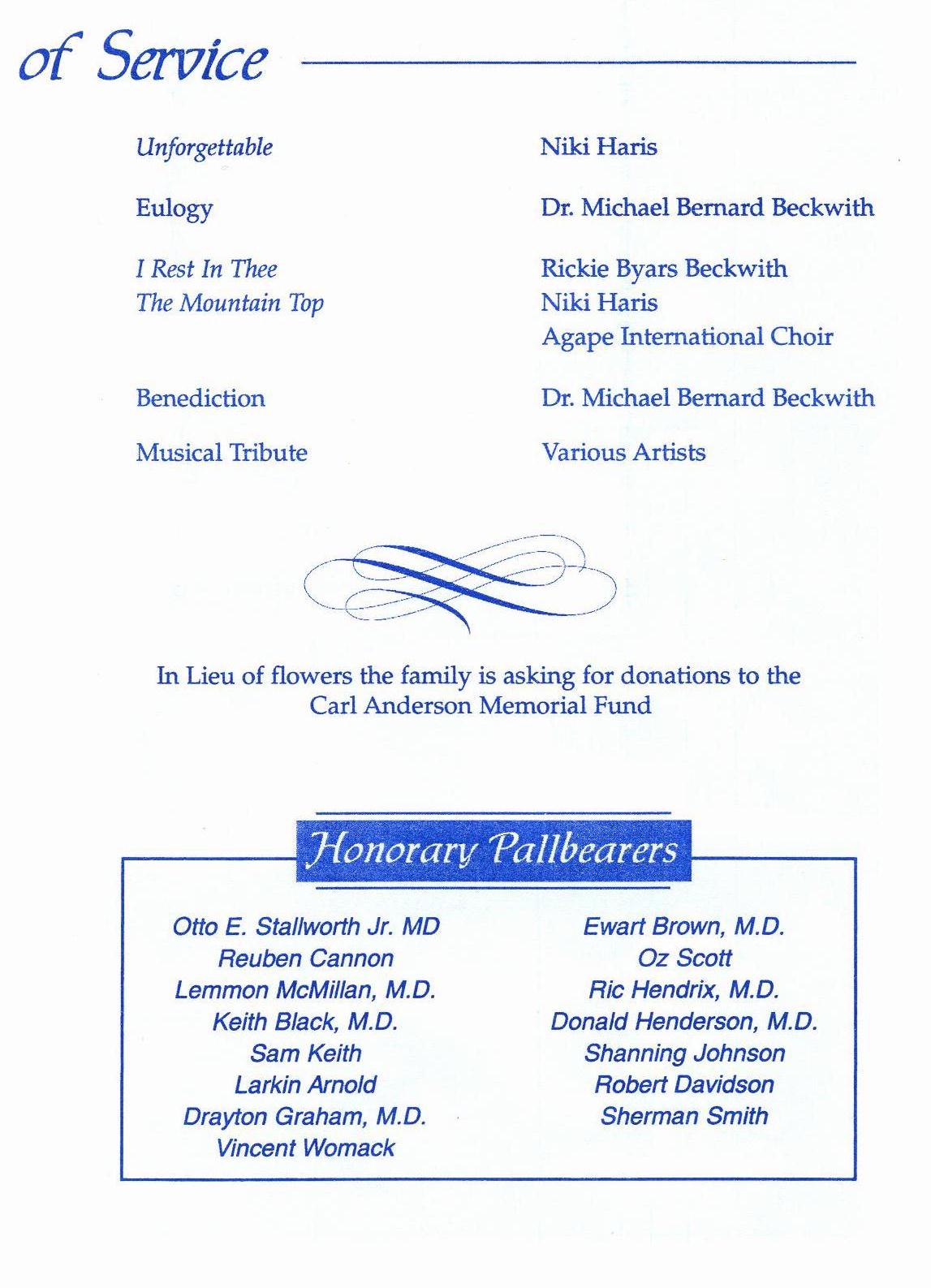 THE PROGRAM FOR CARL'S FUNERAL SERVICE: