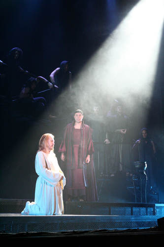 Seeking---Jesus of Nazareth: 25-35, male, rock tenor (low Bb to high E, with pop falsetto to high G), the quietly powerful leader of the poor and downtrodden, intense, compassionate, driven, and sincere, must have a string, charismatic presence, seeking understudy only; (so is this just for - God-forbid - illness - or is this who will take over when Ted does La Mancha, I wonder?)