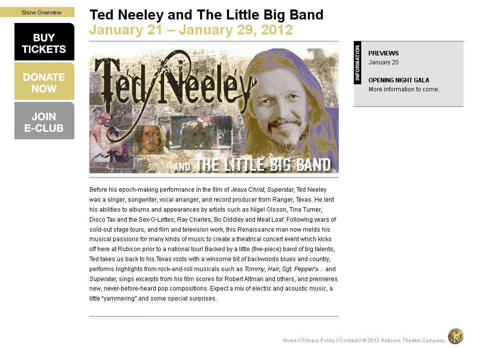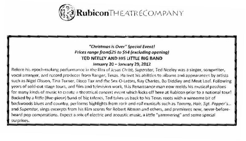 About the only subject Neeley WILL talk about endlessly, because he wants everyone to know about it, is the Rubicon Theatre Company.