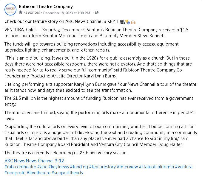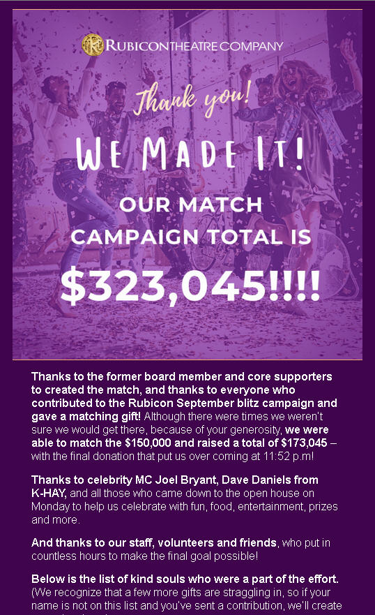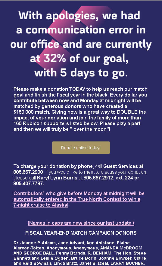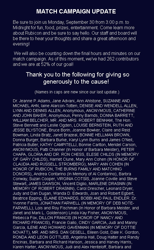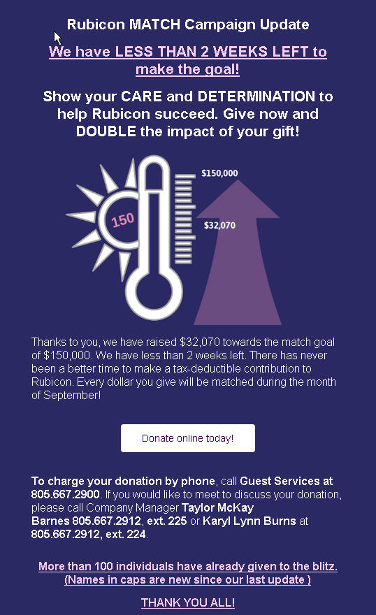 RUBICON GETS A GRANT AND A SPECIAL GIFT!!!
