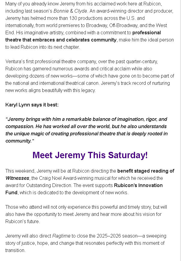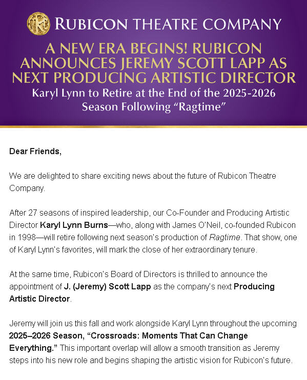 MEET RUBICON'S INCOMING PRODUCING ARTISTIC DIRECTOR!!!