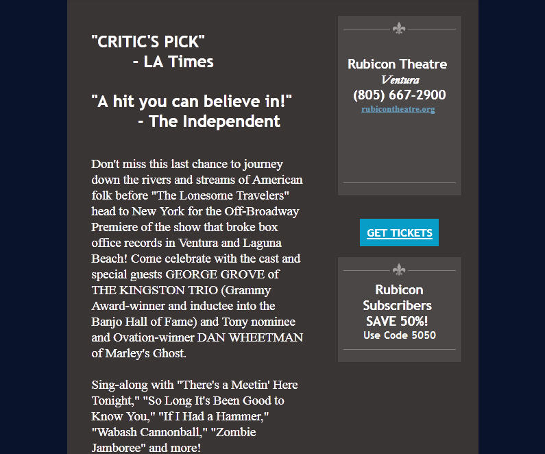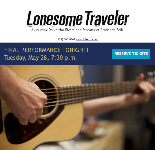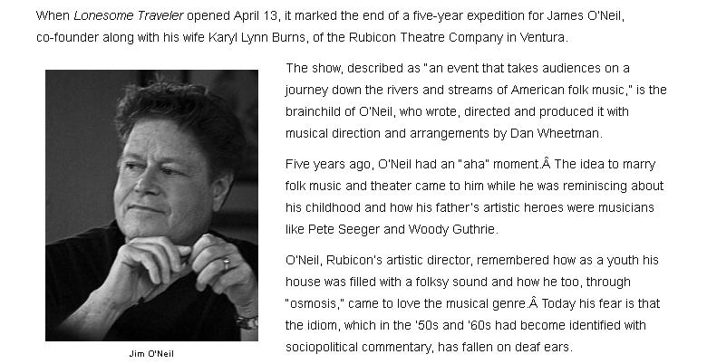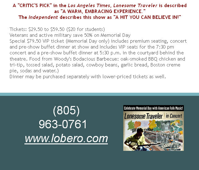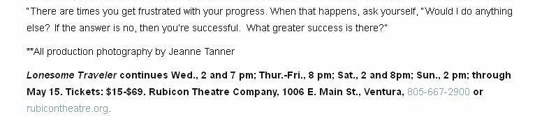 Ventura-USA.com 4/8/13 Article LONESOME TRAVELER Returns to Rubicon Theatre04/08/2013