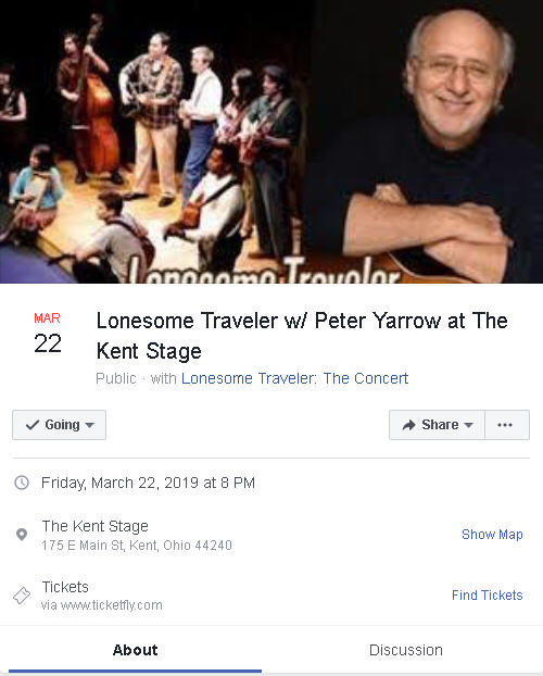 UPDATE 12/24/18 - LONESOME TRAVELER APPEARING AT THE KENT STAGE WITH PETER YARROW!!!